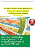 TEST BANK For Nursing Leadership, Management, and Professional Practice for the LPN/LVN, 7th Edition by Tamara R. Dahlkemper, Verified Chapters 1 - 20, Complete Newest Version