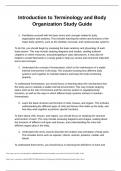 Introduction to Terminology and Body Organization Study Guide