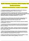 ExCPT Pharmacy Technician (CPhT) Practice Test 2024 Questions and Answers Verified For Guaranteed Pass | Graded A | Latest Update