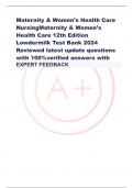 Maternity & Women’s Health Care NursingMaternity & Women’s Health Care 12th Edition Lowdermilk Test Bank 2024 Reviewed latest update questions with 100%verified answers with EXPERT FEEDBACK
