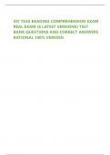 ATI TEAS READING COMPREHENSION EXAM REAL EXAM (8 LATEST VERSIONS) TEST BANK QUESTIONS AND CORRECT ANSWERS RATIONAL 100% VERIFIED.