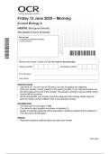OCR A Level BIOLOGY A Paper 1 (H420/01) Official QUESTION PAPER for JUNE 2025-Biological Processes