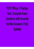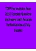 Lizamelyn On this page, you find all documents, package deals, and flashcards offered by seller lizamelyn. 606 Documents 0 Flashcards 4 Package deal Community 0 Followers 0 Following 1 Reviews received 1 0 0 0 0 1 year ago • hlayisani PVL3704 EXAM PACK 2024 WITH RECENT PAST PAPERS.ALL THE BEST IN YOUR EXAMS 612 items Everything Documents Flashcards Package deal Best sold Newest Rating Sophomore Health Unit 1 2026 Update – Complete Test Questions with Verified Answers (0) $21.99 0x sold Access the Sophomore Health Unit 1 Test Complete Exam Questions with Verified Answers 2026 fully updated, designed to help students master key health concepts for early secondary education. This comprehensive resource includes verified practice questions, detailed answers, and key topics covering nutrition, personal wellness, safety, and health decision-making. Ideal for exam preparation, classroom review, and reinforcing understanding, this test guide enhances knowledge, builds confidence, and ... i x Exam (elaborations) • 7 pages • by lizamelyn • uploaded 2026 Quick View i x Sophomore Health • Sophomore Health Stakeholders, Ethics, and Legal Issues in Business 2026 Update – Complete Exam Questions with Verified Answers (0) $21.99 0x sold Access the Stakeholders, Ethics, and Legal Issues in Business Test Bank 2026 updated version, designed to help students and professionals master corporate ethics, legal responsibilities, and stakeholder management. This comprehensive resource includes verified practice questions, detailed answers, and key topics covering corporate governance, ethical decision-making, regulatory compliance, and business law principles. Ideal for exam preparation, coursework, and reinforcing understanding, this gu... i x Exam (elaborations) • 17 pages • by lizamelyn • uploaded 2026 Quick View i x Stakeholders • Stakeholders TCFP Firefighter I & II 2026 Update – Chapters 1-5 Test with Complete Verified Answers (0) $21.99 0x sold Access the TCFP Firefighter I & II Chapters 1-5 Test Complete Exam Questions with Verified Answers 2026 fully updated, designed to help aspiring firefighters master foundational knowledge, safety practices, and operational procedures. This comprehensive resource includes verified practice questions, detailed answers, and key topics covering fire behavior, equipment, fire prevention, safety protocols, and basic fireground operations. Ideal for exam preparation, professional development, and reinf... i x Exam (elaborations) • 95 pages • by lizamelyn • uploaded 2026 Quick View i x TCFP Officer • TCFP Officer TCFP Officer 1 Practice Test 2026 Update – Complete Exam Questions with Verified Answers (0) $21.99 0x sold Access the TCFP Officer 1 Practice Test Complete Exam Questions with Verified Answers 2026 fully updated, designed to help firefighters and fire service personnel master leadership, operations, and management skills. This comprehensive resource includes verified practice questions, detailed answers, and key topics covering incident command, fireground operations, risk management, and officer duties. Ideal for exam preparation, professional development, and reinforcing fire service knowledge, thi... i x Exam (elaborations) • 94 pages • by lizamelyn • uploaded 2026 Quick View i x TCFP Officer • TCFP Officer TCFP Fire Inspector Exam 2026 Update – Complete Questions & Verified Answers (0) $21.99 0x sold Access the TCFP Fire Inspector Exam 2026 Complete Questions and Answers with Verified Solutions fully updated, designed to help fire service professionals master inspection, code compliance, and safety protocols. This comprehensive resource includes verified practice questions, detailed answers, and key topics covering fire prevention, building codes, hazardous materials, and inspection procedures. Ideal for exam preparation, professional development, and reinforcing fire service knowledge, this... i x Exam (elaborations) • 28 pages • by lizamelyn • uploaded 2026 Quick View i x TCFP Officer • TCFP Officer TCFP Fire Officer IV 2026 Update – Complete Exam Questions with Verified Answers (0) $21.99 0x sold Access the TCFP Fire Officer IV Complete Exam Questions with Verified Answers 2026 fully updated version, designed to help firefighters and fire service professionals master leadership, management, and operational responsibilities. This comprehensive resource includes verified practice questions, detailed answers, and key topics covering fire officer duties, emergency management, incident command, and department administration. Ideal for exam preparation, professional development, and reinforcin... i x Exam (elaborations) • 13 pages • by lizamelyn • uploaded 2026 Quick View i x TCFP Officer • TCFP Officer TEAS Science 2026 Update – Study Guide & Practice Questions (0) $21.99 0x sold Access the TEAS Science Study Guide & Practice Questions 2026 updated version, designed to help students master essential science concepts for the Test of Essential Academic Skills (TEAS). This comprehensive resource includes verified practice questions, detailed answers, and key topics covering biology, chemistry, anatomy and physiology, and scientific reasoning. Ideal for exam preparation, coursework, and reinforcing understanding, this guide enhances knowledge, builds confidence, and ensures ... i x Exam (elaborations) • 72 pages • by lizamelyn • uploaded 2026 Quick View i x TEAS Science • TEAS Science Intro to Human Anatomy & Physiology and Homeostasis 2026 Update – Test Bank (0) $15.99 0x sold Access the Intro to Human Anatomy & Physiology and Homeostasis Test Bank 2026 updated version, designed to help students master foundational concepts of human anatomy, physiology, and the mechanisms of homeostasis. This comprehensive resource includes verified practice questions, detailed answers, and key topics covering body systems, regulatory processes, and clinical applications. Ideal for exam preparation, coursewor
