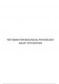 TEST BANK FOR BIOLOGICAL PSYCHOLOGY KALAT 12TH EDITION