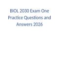 BIOL 2030 Exam One Practice Questions and Answers 2026.docx