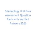 Criminology Unit Four Assessment Question Bank with Verified Answers 2026.docx