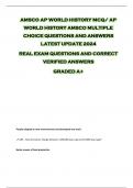 AMSCO AP WORLD HISTORY MCQ/ AP WORLD HISTORY AMSCO MULTIPLE CHOICE QUESTIONS AND ANSWERS LATEST UPDATE 2024 REAL EXAM QUESTIONS AND CORRECT VERIFIED ANSWERS GRADED A+