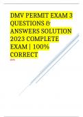 DMV PERMIT EXAM 3 QUESTIONS & ANSWERS SOLUTION 2023 COMPLETE EXAM | 100% CORRECT