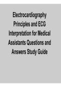 The guide focuses on key concepts in Electrocardiography, including waveform analysis, heart rate calculation, rhythm identification, and differentiation between normal and abnormal ... i x Exam (elaborations) • 17 pages • by masterstudy • uploaded 2026 Quick View i x Electrocardiography for Healthcare Professionals • Electrocardiography for Healthcare Professionals Electrocardiography Principles and ECG Interpretation for Medical Assistants – Questions and Answers Study Guide (0) $15.99 0x sold This Electrocardiography study guide is designed specifically for medical assistants, providing a clear understanding of ECG principles and accurate interpretation techniques. It includes structured questions and answers to help learners master essential concepts in Electrocardiography, including heart electrical activity, waveform components, rhythm analysis, and identification of common cardiac conditions.