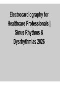 Students will also review essential principles related to ECG equipment usage, lead placement, and patient monitoring techniques. This r... i x Exam (elaborations) • 13 pages • by masterstudy • uploaded 2026 Quick View i x Electrocardiography • Electrocardiography Electrocardiography – Heart Function, Equipment & Patient Care | Study Guide & Test Bank (0) $15.99 0x sold This comprehensive Electrocardiography study guide and test bank provides essential knowledge on heart function, ECG equipment, and patient care practices used in clinical settings. It introduces the fundamentals of cardiac electrical activity, rhythm interpretation, and proper electrode placement for accurate monitoring.