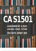 This document contains the complete multiple-choice question set and marked answers for Assignment 3 in CAS1501. It was completed during Semester 1 of 2024 at UNISA and covers foundational legal concepts including normative systems, private and public law, legal subjects and objects, sources of law, and South Africa’s legal history. The document spans Units 1 to 7 and includes scenario-based questions with correct options indicated, making it ideal for first-year law students preparing for ass...