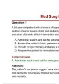This document contains 36 verified multiple-choice questions and answers from the Med Surg HESI V2 Exam, updated for the 2025 academic cycle. It emphasizes clinical prioritization in acute care scenarios including myocardial infarction, diabetic ketoacidosis, hypertensive crisis, COPD exacerbation, asthma management, dementia-related agitation, and heart failure. Each question includes the correct answer and rationale, making it ideal for NCLEX-style exam preparation and clinical decision-making...