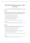This document contains 60 verified NGN-style multiple-choice questions and answers from the 2025 ATI PN Pediatrics Proctored Exam – Version 3. It covers essential pediatric topics including neonatal care, developmental milestones, respiratory conditions, immunizations, medication dosing, chronic illness management, and therapeutic communication. Each question includes the correct answer and rationale, making it ideal for NCLEX-PN preparation and last-minute review. The content reflects current...