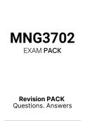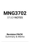 This exam pack is an essential study aid for students of UNISA's MNG3702 Strategic Implementation course. It contains a revision pack with questions and answers on strategic implementation. Topics covered include strategic management, change management, and organisational learning. The document also provides practical exam tips to help you prepare.