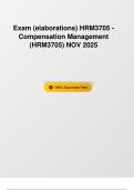 This document provides exam elaborations and answers for the HRM3705 Compensation Management course. It addresses key topics such as the objectives of compensation management, employee retention, motivation, equity, and cost efficiency, using a case study on Mashaba Manufacturing. It also includes a detailed discussion of executive remuneration and the remuneration building blocks for the CustomAir case study. The content is an ideal resource for exam preparation and understanding complex concep...