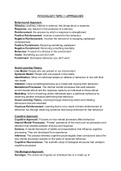 Summary of Behaviourist, Humanistic, Psychodynamic, Biological, Cognitive Approaches as well as Social Learning Theory. Includes references to key studies, as well as covering the key concepts, psychologists, definitions and evaluation points. Evaluation points are in red and green and all key terms are in bright blue