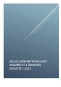 ADL2601 Administrative Law study pack with summarised notes and possible examination questions and answers. Pass guaranteed.