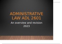 ADL2601 Administrative Law study pack with summarised notes and possible examination questions and answers. Pass guaranteed.