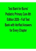 Mindstwo On this page, you find all documents, package deals, and flashcards offered by seller mindstwo. 485 Documents 0 Flashcards 5 Package deal Community 0 Followers 1 Following 298 Reviews received 254 41 1 0 2 5 months ago • wfgangelyosores Test Bank for Craven & Hirnle's Fundamentals of Nursing: Concepts and Competencies for Practice, 10th Edition by Christine Henshaw, Renee Rassilyer 5 months ago • chiebukaagbakwuru1 Test Bank for Medical-Surgical Nursing Concepts and Practice Fifth Edition by Holly K Stromberg Complete Chapters Comprehensive Medical-Surgical Nursing Study Resource 6 months ago • themountainsarecalling Test bank For Applied Pathophysiology for the Advanced Practice Nurse 2nd Edition by Lucie By: mindstwo • 6 months ago Hello,kindly check and download the updated document.Also give a 5 star 7 months ago • topgradesdr Business Law Today Solution and Answer Guide for Business Law Today - The Essentials Text & 7 months ago • topgradesdr Test Bank for Davis Advantage for Understanding Medical-Surgical Nursing, 7th Edition, by Linda S. + Show more reviews 493 items Everything Documents Flashcards Package deal Best sold Newest Rating Brunner & Suddarth’s Medical-Surgical Nursing Test Bank Complete Questions & Answers 2026 Update (0) $21.99 0x sold Prepare for nursing exams with Brunner & Suddarth’s Medical-Surgical Nursing complete questions & answers test bank 2026 updated. Covers adult health concepts, disease management, nursing interventions, patient care, and clinical scenarios with comprehensive, exam-focused Q&A. Ideal for nursing students reviewing for quizzes, tests, and Med-Surg clinical assessments. i x Exam (elaborations) • 31 pages • by mindstwo • uploaded 2026 Quick View i x Medical-Surgical Nursing • Medical-Surgical Nursing Test Bank for Burns: Pediatric Primary Care 8th Edition 2026 Full Test Bank with Verified Answers (0) $21.99 0x sold Ace pediatric nursing exams with Burns: Pediatric Primary Care 8th Edition 2026 full test bank with verified answers. Covers child health assessment, common pediatric conditions, nursing interventions, and exam-focused Q&A. Ideal for nursing students and practitioners preparing for quizzes, tests, and clinical evaluations. i x Exam (elaborations) • 28 pages • by mindstwo • uploaded 2026 Quick View i x Burns\\\\\\\' Pediatric Primary Care • Burns\\\\\\\' Pediatric Primary Care Test Bank for Effective Police Supervision 9th Edition Complete Exam Questions with Verified Answers 2026 Update (0) $21.99 0x sold Prepare for law enforcement exams with Effective Police Supervision 9th Edition complete exam questions and verified answers test bank 2026 updated. Covers supervisory strategies, leadership principles, police management, and exam-focused Q&A. Ideal for police officers, supervisors, and criminal justice students reviewing for exams and professional certification. i x Exam (elaborations) • 123 pages • by mindstwo • uploaded 2026 Quick View i x Effective Police Supervision • Effective Police Supervision Test Bank for Fundamentals of Anatomy & Physiology 11th Edition Complete Questions & Answers 2026 Update (0) $21.99 0x sold Master anatomy and physiology with Fundamentals of Anatomy & Physiology 11th Edition complete questions and answers test bank 2026 updated. Covers body systems, organ functions, physiology concepts, and exam-focused Q&A. Ideal for students preparing for quizzes, tests, and comprehensive A&P exams. i x Exam (elaborations) • 51 pages • by mindstwo • uploaded 2026 Quick View i x Fundamentals of Anatomy & Physiology • Fundamentals of Anatomy & Physiology Test Bank for Fundamentals of Nursing 10th Edition Complete Exam Questions & Answers 2026 Update (0) $21.99 0x sold Ace your nursing exams with Fundamentals of Nursing 10th Edition complete exam questions and answers test bank 2026 updated. Covers essential nursing concepts, patient care, clinical skills, and evidence-based interventions with comprehensive, exam-focused Q&A. Perfect for nursing students preparing for quizzes, tests, and practical assessments. i x Exam (elaborations) • 35 pages • by mindstwo • uploaded 2026 Quick View i x Fundamentals of Nursing • Fundamentals of Nursing Test Bank for Fundamentals of Nursing 11th Edition Complete Exam Questions & Answers 2026 Update (0) $21.99 0x sold Prepare effectively with Fundamentals of Nursing 11th Edition complete exam questions and answers test bank 2026 updated. Covers core nursing concepts, patient care, clinical skills, nursing interventions, and exam-focused Q&A. Ideal for nursing students reviewing for quizzes, tests, and comprehensive nursing assessments. i x Exam (elaborations) • 10 pages • by mindstwo • uploaded 2026 Quick View i x Fundamentals of Nursing • Fundamentals of Nursing Test Bank for Gould’s Pathophysiology 7th Edition Complete Exam Questions & Answers 2026 Update (0) $21.99 0x sold Master pathophysiology concepts with Gould’s Pathophysiology 7th Edition complete exam questions and answers test bank 2026 updated. Covers disease processes, pathophysiologic mechanisms, clinical manifestations, and exam-focused Q&A. Perfect for nursing and medical students preparing for tests, quizzes, and comprehensive exams. i x Exam (elaborations) • 90 pages • by mindstwo • uploaded 2026 Quick View i x Gould\\\\\\\'s Pathophysiology • Gould\\\\\\\'s Pathophysiology Test Bank for Maternal Child Nursing Care 6th Edition 2026 Update Complete Questions & Verified Answers (0) $21.99 0x sold Prepare for nursing exams with Maternal Child Nursing Care 6th Edition 2026 update complete questions and verified answers test bank. Covers maternal health, newborn and pediatric care, nursing interventions, patient safety, and clinical scenarios with comprehensive, exam-focused Q&A. Ideal for nursing students reviewing for quizzes, tests, and clinical practice. i x Exam (elaborations) • 45 pages • by mindstwo • uploaded 2026 Quick V