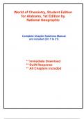 Complete Solutions Manual for World of Chemistry, Student Edition for Alabama, 1st Edition by National Geographic ; ISBN13: 9798214377520...(Full Chapters included and organized in reverse order from Chapter 21 to 1)...1.Chemistry: An Introduction