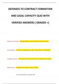 DEFENSES TO CONTRACT FORMATION AND LEGAL CAPACITY QUIZ WITH VERIFIED ANSWERS [ GRADED +]