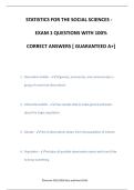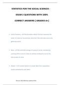 STATISTICS FOR THE SOCIAL SCIENCES - EXAM 1 QUESTIONS WITH 100% CORRECT ANSWERS [ GUARANTEED A+] 1. Descriptive statistic - Organizes, summarizes, and communicates a group of numerical observations 2. Inferential statistic - Uses sample data to make general estimates about the larger population 3. Sample - Set of observations drawn from the population of interest 4. Population - Includes all possible observations about which we'd like to know something ©morren 2025/2026.Y...
