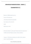 BEHAVIOUR MODIFICATION - EXAM 1 [ GUARANTEED A+] Behaviour - What people do and say Has one or more dimensions Can be observed, described, and recorded Has an impact on the environment Lawful May be overt or covert Dimensions of behavior - An aspect of behavior that can be measured and modified; may include frequency, duration, intensity, and latency Frequency - A dimension of behavior; the number of times a behavior occurs in a specific time period ©morren 2025/2026.Yea...