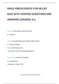 DRUG PREFIX/SUFFIX FOR NCLEX QUIZ WITH VERIFIED QUESTIONS AND ANSWERS [GRADED A+]