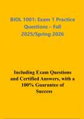BIOL 1001: Exam 1 Practice Questions – Fall 2025/Spring 2026