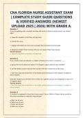 CNA Florida Nurse Assistant Exam | Complete Study Guide Questions & Verified Answers (Newest Upload 2025 | 2026) With Grade A.
