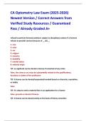 CA Optometry Law Exam (2025-2026) Newest Version / Correct Answers from Verified Study Resources / Guaranteed Pass / Already Graded A+