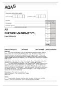 l	You must have the AQA Formulae and statistical tables booklet for A‑level Mathematics and A‑level Further Mathematics. You should have a graphical or scientific calculator that meets the requirements of the specification. You must ensure you have the other optional Question Paper/An... i x Exam (elaborations) • 27 pages • by mungaikhenry • uploaded 2024 Quick View i x AQA FURTHER MATHEMATICS • AQA FURTHER MATHEMATICS 1 2 3