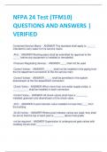 NFPA 24 Test (TFM10) QUESTIONS AND ANSWERS | VERIFIED
