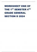 WORKSHEET END OF THE 1ST SEMSTER 4TH GRADE GENERAL SECTION D 2024