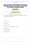 - NURS 190 HEALTH ASSESSMENT FINAL EXAM ACTUAL EXAM 350 QUESTIONS AND CORRECT ANSWERS AGRADE • Exam (elaborations)