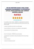 - NR 605 MIDTERM EXAM & FINAL EXAM (DIAGNOSIS MANAGEMENT IN PSYCHIATRIC) ACTUAL EXAM QUESTIONS AND CORRECT ANSWERS AGRADE • Exam (elaborations)