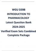 WGU D398 INTRODUCTION TO PHARMACOLOGY Latest Question Bank 2024/2025 Verified Exam Sets Combined Complete Package
