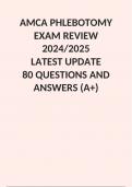 AMCA PHLEBOTOMY EXAM REVIEW 2024/2025 LATEST UPDATE 80 QUESTIONS AND ANSWERS (A+)