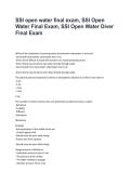 Comprehensive test bank for SSI Open Water Diver Final Exam. Includes verified questions and answers covering dive theory, safety procedures, equipment usage, underwater navigation, and certification requirements.