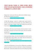 Comprehensive test bank for NURS 11 Med-Surgical HESI Exit Exam. Includes verified questions and correct answers covering medical-surgical nursing concepts, patient care, clinical procedures, and exam-focused content for nursing students.