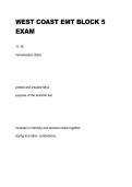 Comprehensive test bank for West Coast EMT Block 5 Exam. Includes verified questions and answers covering emergency medical procedures, patient assessment, trauma care, and EMT protocols for exam preparation.