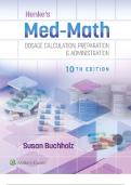 Henke’s Med-Math: Dosage Calculation, Preparation & Administration – Test Bank (10th Edition) | Susan Buchholz | Nursing Medication Math | Complete Questions with Answers