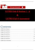 This document includes the full content of LETRS Unit 8, covering Sessions 1–6 and the final assessment. It presents multiple-choice questions with correct answers and detailed rationales on essential topics such as the Simple View of Writing, best practices in writing instruction, sentence structure, spelling development, handwriting, opinion and informational writing, peer review, and assessment methods. The material provides a structured review that combines foundational writing skills with...