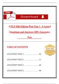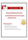 This document provides the complete ATLS (Advanced Trauma Life Support) 10th Edition Post Test 4 with multiple-choice questions, correct answers, and detailed rationales aligned with ATLS 2027 principles. Topics include airway management, shock and hemorrhage control, traumatic brain injury, chest trauma, obstetric and pediatric trauma, frostbite, compartment syndrome, and burn care. It is designed as a practice exam resource to prepare students and professionals for ATLS certification and recer...