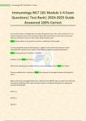 Immunology MLT 181 Module 1-4 Exam Questions| Test Bank| Guide Answered 100% Correct,Immunology MLT 181 Module 1-4 Exam Questions| Test Bank| Guide Answered 100% Correct,Immunology MLT 181 Module 1-4 Exam Questions| Test Bank| Guide Answered 100% Correct