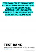 TEST BANK FOR INTRODUCTORY CLINICAL PHARMACOLOGY 12TH EDITION BY SUSAN FORD CHAPTER 1-54 COMPLETE GUIDE NEWEST VERSION 2023 WITH ACCURATE ANSWERS