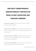 ONS-ONCC CHEMOTHERAPY IMMUNOTHERAPY CERTIFICATE EXAM LATEST QUESTIONS AND VERIFIED ANSWERS