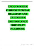 TEST BANK FOR CURRENT MEDICAL DIAGNOSIS AND TREATMENT 2023,,2024 62ND EDITION BY PAPADAKIS.