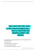 WEST COAST EMT FINAL EXAM (LATEST UPDATED VERSION 2023 – 2024) ALL QUESTIONS AND ANSWERS CORRECT AND VERIFIED.