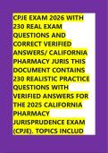 CPJE EXAM 2026 WITH 230 REAL EXAM QUESTIONS AND CORRECT VERIFIED ANSWERS/ CALIFORNIA PHARMACY JURIS THIS DOCUMENT CONTAINS 230 REALISTIC PRACTICE QUESTIONS WITH VERIFIED ANSWERS FOR THE 2025 CALIFORNIA PHARMACY JURISPRUDENCE EXAM (CPJE). TOPI